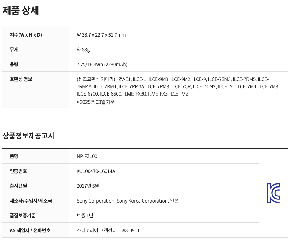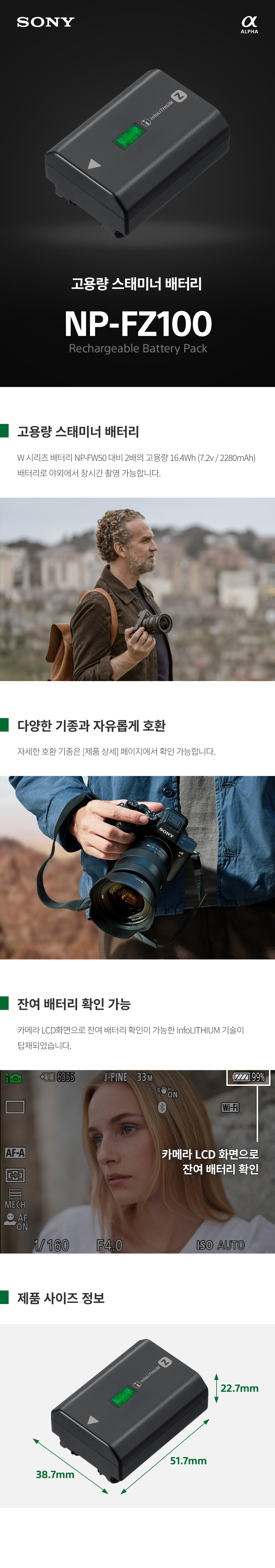 용도 FX3, α9 , α7R III 전용 충전식 배터리 팩