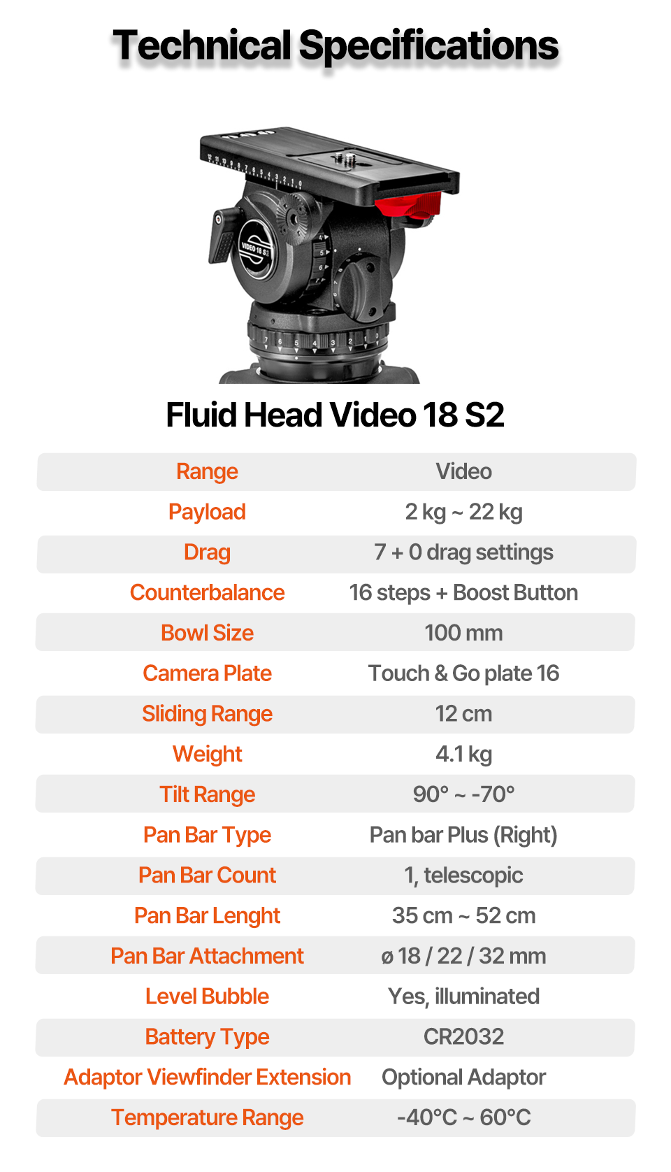 Fluid Head Video 18 S2 단품