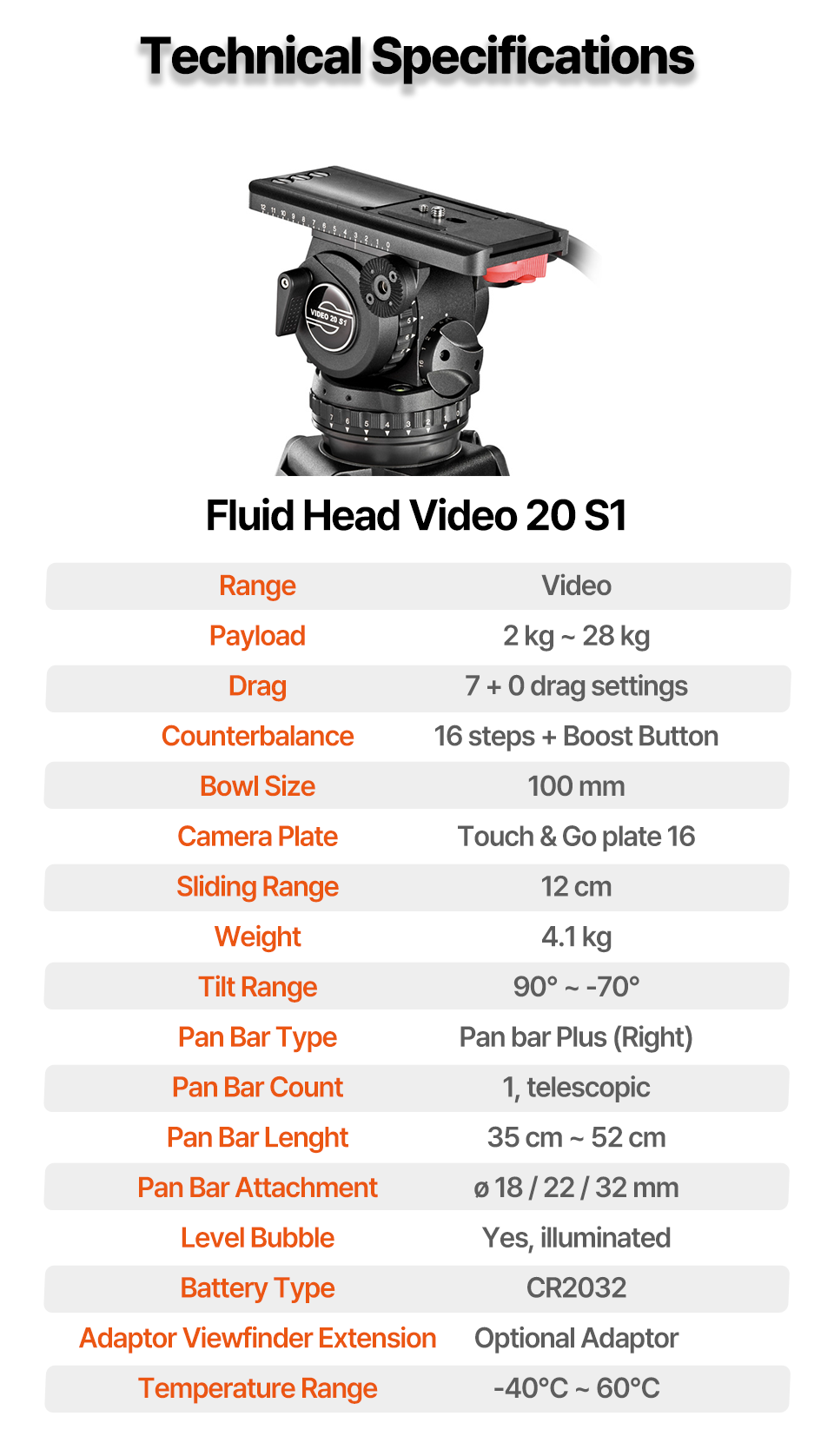 Fluid Head Video 20 S1 단품